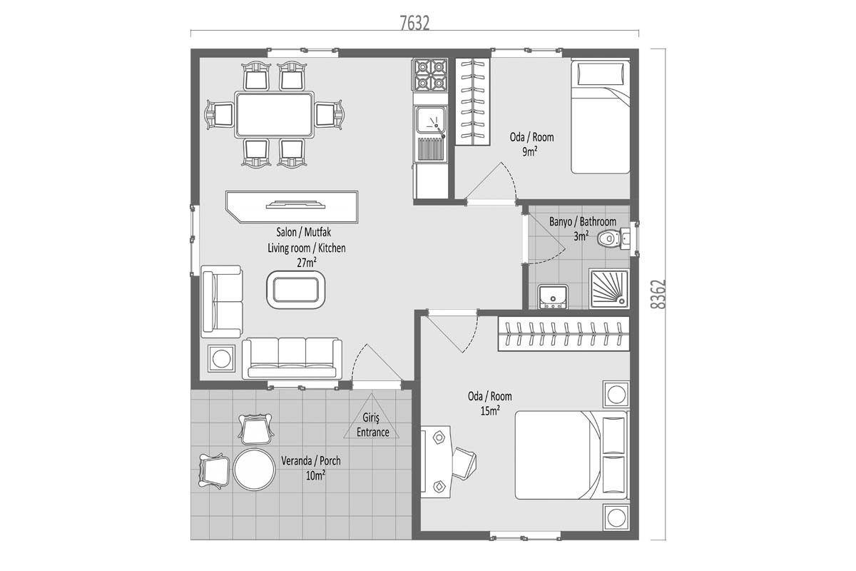 | 51 m² Prefabrik Ev | 2+1 | 405.693 TL |
