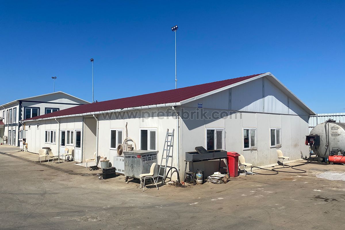 - Şantiye yapılarında; ofis, yatakhane, yemekhane, eğitim salonu, WC duş, çamaşırhane, laboratuvar gibi tüm yapı çözümlerinde prefabrik yapılar kullanılmaktadır.