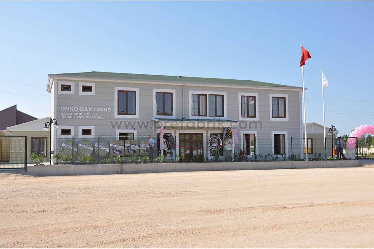 Bugüne kadar gerçekleştirdiğimiz prefabrik hastane projeleri arasında Prefabrik Sahra Hastanesi Poliklinik Binaları, Aile Sağlığı Merkezleri, 112 Acil Servis İstasyonu Merkezleri, şantiye yerleşkesi sağlık hizmet binaları gibi yapıların yanı sıra hasta rehabilitasyon merkezi binaları bulunuyor. Bursa Nilüfer’deki Onko-Day Hasta Rehabilitasyon merkezi bunlardan sadece biri. Burası Bursa’da Onkoloji Hastanesi’nde tedavi gören hasta ve yakınlarının tedavileri sürecinde konaklama ihtiyacını karşılayan önemli bir merkez konumunda. Merkezde 13 adet 1+1 yapının yanı sıra bir adet de çift katlı yönetim ve hizmet binası yer alıyor. Gerek Türkiye’de gerekse Dünya genelinde Karmod üretimi olan sağlık yapıları insanlığın hizmetinde.
