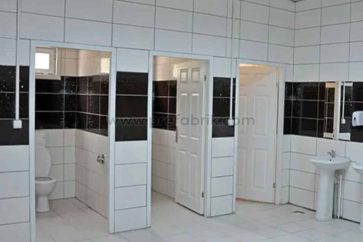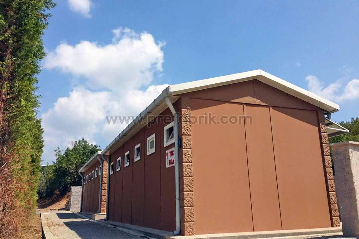 Prefabrik hazır duş ve wc binalarının mobil olanları 135×135 cm tekli üniteden başlayarak 12’lü üniteye kadar üretilmektedir. 12 üzeri üniteler özel projelendirilerek demonte üretimle yerinde kurulum gerçekleştirilmektedir. Demonte ürünlerde 100 metrekarelik bir duş ve tuvalet binası planlamaya göre ortalama 10-15 gün gibi kısa bir zaman diliminde kullanıma hazır hale getirilebilmektedir.
